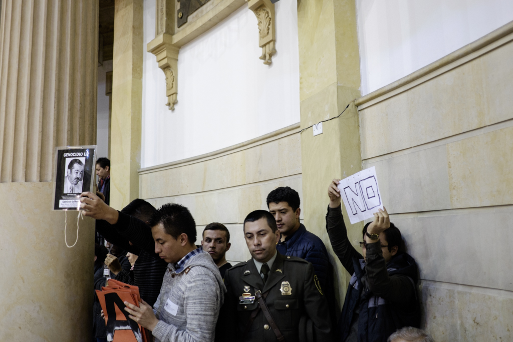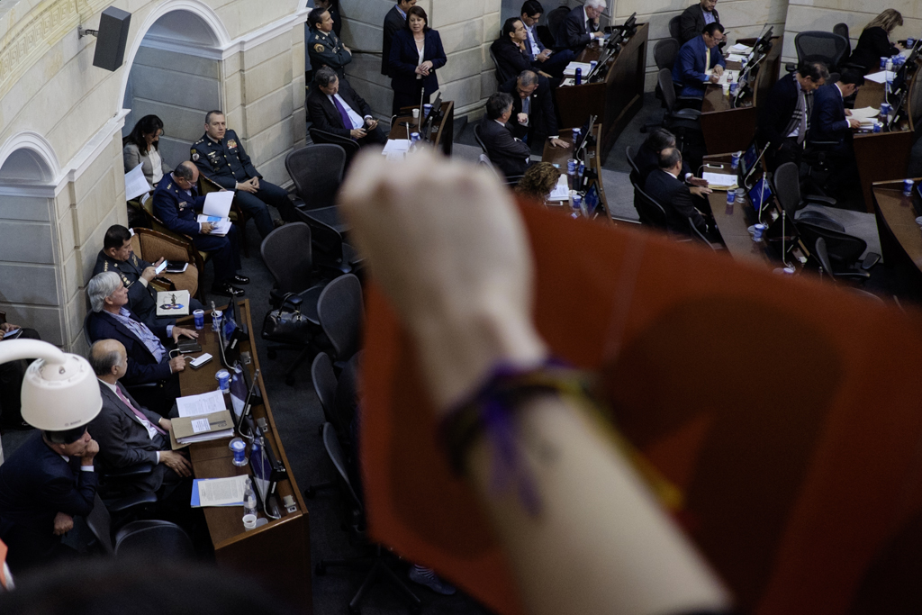 El uribismo no votó, pero chilló y tensó la cuerda. Los partidos de la Unidad Nacional dudaron pero votaron. Los cambios fueron mínimos y las dudas muchas en la aprobación de una Jurisdicción Especial de Paz que las víctimas empujaron toda la tarde desde la calle y desde la zona de invitados.
