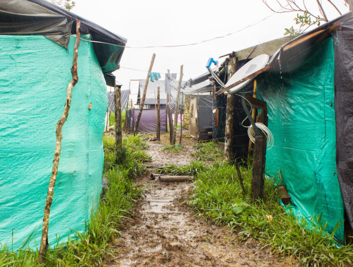 Las FARC han entregado sus armas cumpliendo con los acuerdos que la organización tiene con el Estado. Sin embargo, en Mesetas, la Zona Veredal con más guerrilleros y donde se escenificó la dejación, los incumplimientos oficiales se traducen en barro no más. Así están las cosas.