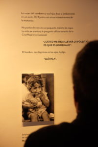 La exposición está montada en Bogotá, en el Claustro de San Agustín, en la esquina adyacente a la Casa de Nariño con un gran cartel en la fachada, de manera que el Presidente Duque y cada funcionario o particular que vaya a reunirse con él no pueda decir que no se enteró de este ejercicio de memoria, que más que recordar, nos cuenta, por primera vez a muchos, lo que fue realmente esta guerra.