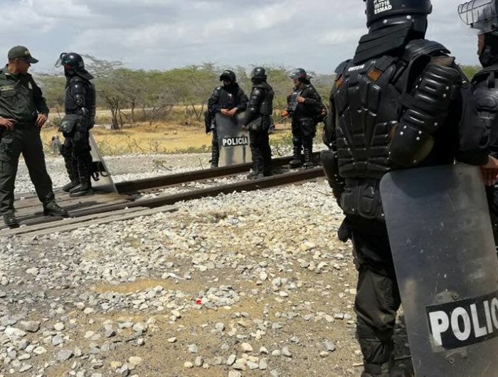 De nada parece haber servido la detención de seis líderes Wayuú y de un menor bien entrada la noche del sábado 4 de febrero en el kilómetro 70 de la vía férrea del tren del carbón, en el territorio de Katsaliamana (Vía Uribía-Cuatro Vías), en La Guajira. Este domingo se redoblaron los bloqueos del tren del carbón en los kilómetros 133 (Ichichon), en el 114 (Pushouria) o en el 123 (Waratat). La acción represiva del ESMAD en la noche del sábado, pasadas ya las 11 p.m., y la detención de siete personas (seis autoridades tradicionales y un menor de 16 años) buscaba, como confesaba el coronel Tito Yesid Castellanos Tuay, comandante de la Policía Guajira que al judicializar a los líderes quedara desbloqueada la línea férrea. El plan les salió mal. De hecho, las comunidades han reaccionado con más decisión y este domingo se han producido nuevas detenciones en los kilómetros 133 y en el 123. En la noche del domingo, después de intensas negociaciones, los siete detenidos del sábado fueron liberados. Los bloqueos de la línea férrea también fueron levantados pero sigue la concentración de wayuu en Katsaliamana.
