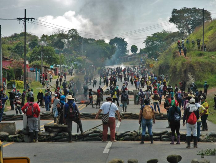 Pasando Santander de Quilichao la Panamericana es una ruta fantasma. No cruza un sólo vehículo, no hay buses ni camiones. Pasan motos que se aventuran con campesinos de la zona, o algunos caminantes esporádicos, la mayoría grupos de venezolanos que van a pie hacia el Ecuador con los niños de brazos y esos morrales aparatosos inconfundibles. La Panamericana es una carretera infartada desde el martes 12 de marzo, cuando veinte mil indígenas y campesinos del suroccidente del país que acampaban en las montañas cercanas se volcaron a taponarla tras una nutrida asamblea el día anterior en la vereda El Pital, del municipio de Caldono.